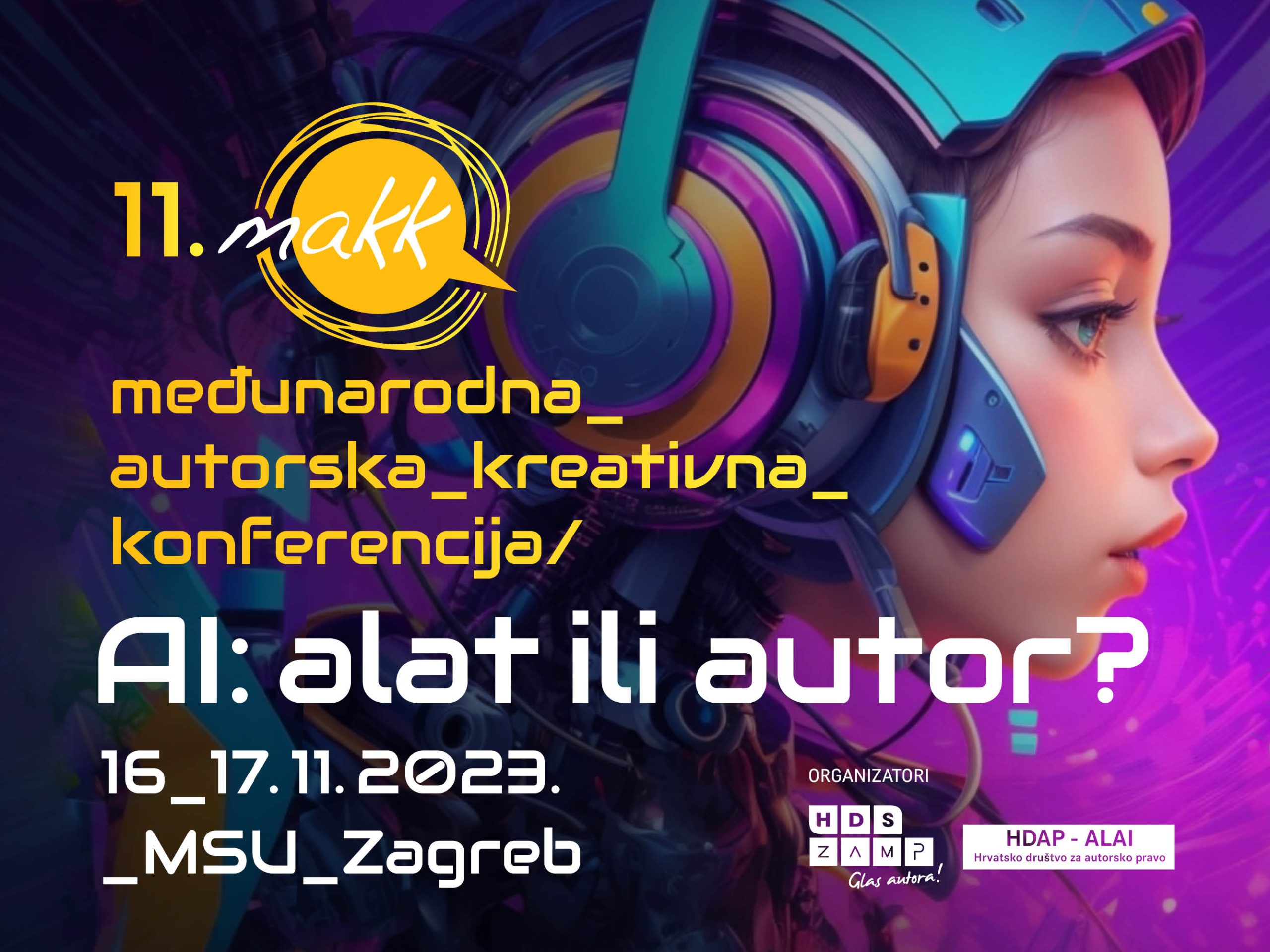 Nadolazeće, 11. po redu izdanje Međunarodne autorske kreativne konferencije MAKK održat će se u zagrebačkom Muzeju suvremene umjetnosti, 16. i 17. studenoga. U zajedničkoj organizaciji stručne službe ZAMP Hrvatskog društva skladatelja i Hrvatskog društva za autorsko pravo, centralna tema ovogodišnje konferencije o autorskom pravu i intelektualnom vlasništvu je utjecaj umjetne inteligencije na kulturne i kreativne industrije, „je li AI alat ili autor?“. Uz niz panel diskusija i prezentacija, HDS ZAMP najavljuje i praktične radionice namijenjene autorima i glazbenicima.