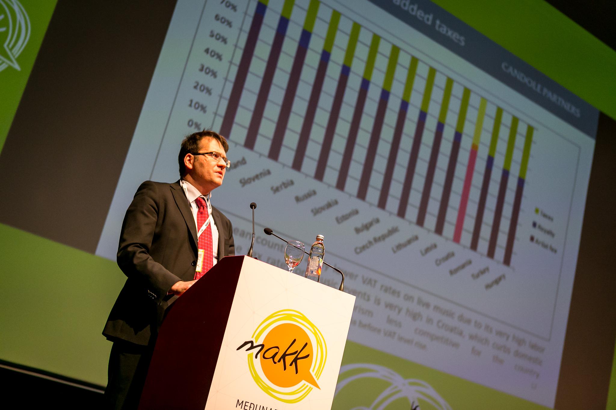 IMG_5598Daniel Antal iz tvrtke Candole Partners, Nizozemska, na ovogodišnjem je MAKK-u predstavio prve preliminarne rezultate Studije mapiranja hrvatske glazbene industrije koju ta tvrtka provodi u suradnji s Hrvatskim društvom skladatelja i glazbenom udrugom Unison. Ova tvrtka već je provela takva istraživanja u Mađarskoj, Slovačkoj i Velikoj Britaniji pa je u prezentaciji dana i usporedba s tim zemljama.