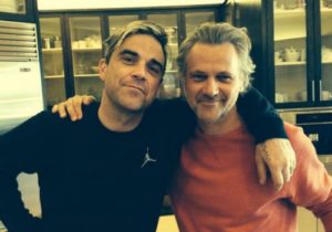 - … onda se dogodio poziv Robbieja Williamsa koji ga je nasumično izabrao iz popisa predloženih autora. Njihova prva suradnja dogodila se na Williamsovom samostalnom debiju, Life thru a lens, koji je, zahvaljujući uspješnom singlu „Angels“, prodan u više od dva milijuna primjeraka. Angels je, pak, Williamsov najprodavaniji singl u karijeri.